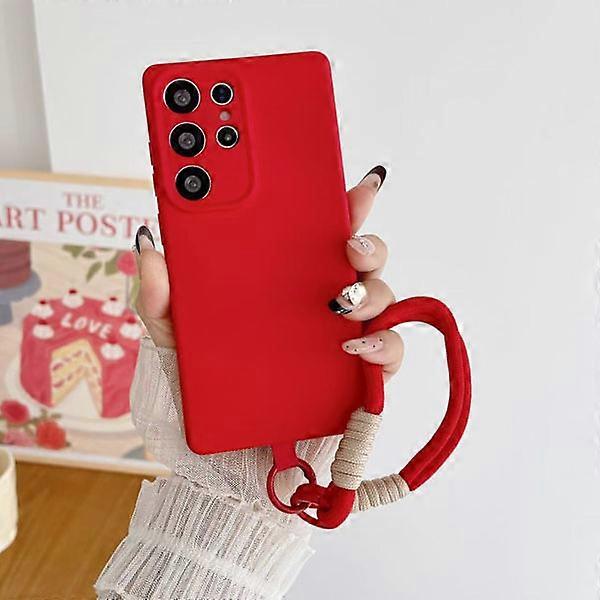 RYI_Wrist Strap Candy Color Soft Silicone Case Lanyard Matte Shockproof Protection Compatible with S22 S24 Ultra Plus Mobile Case red S22
