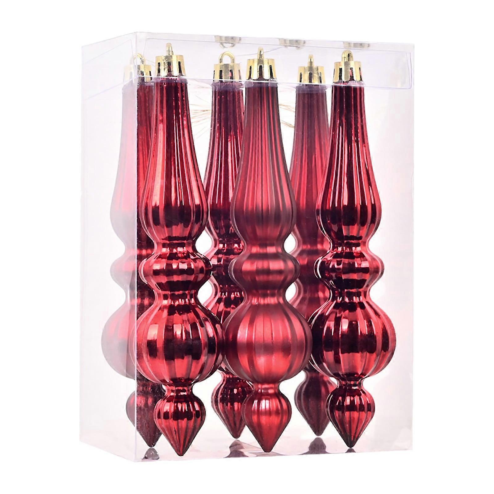 Conical Christmas Ornaments Plastic Xmas Tree Decor, Wine 6Pcs Conical Shape Plastic Christmas Ornaments Set for Xmas Tree Hanging Decor