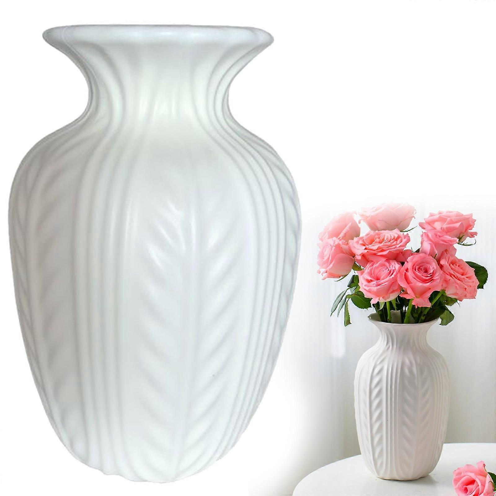 White 9.4" Round Ceramic Vase, Wheat Ear Textured Modern Large Vase for Trendy Home Decor, Living Room, Entryway, Shelf, Office, Rustic Table