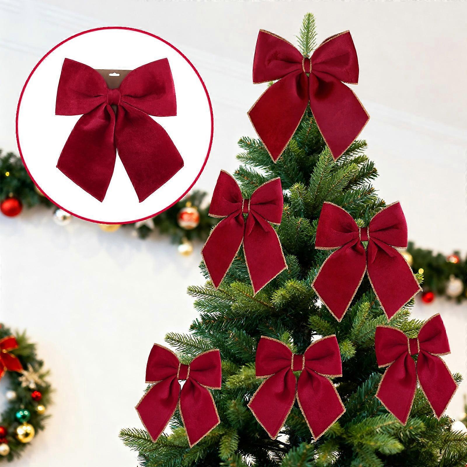 1 Pack 7.9x10.2IN Large Velvet Christmas Bow with Glitter Gold Edge, compatible with Xmas Tree, Wreath, Fence, Stairs, Fireplace Decor