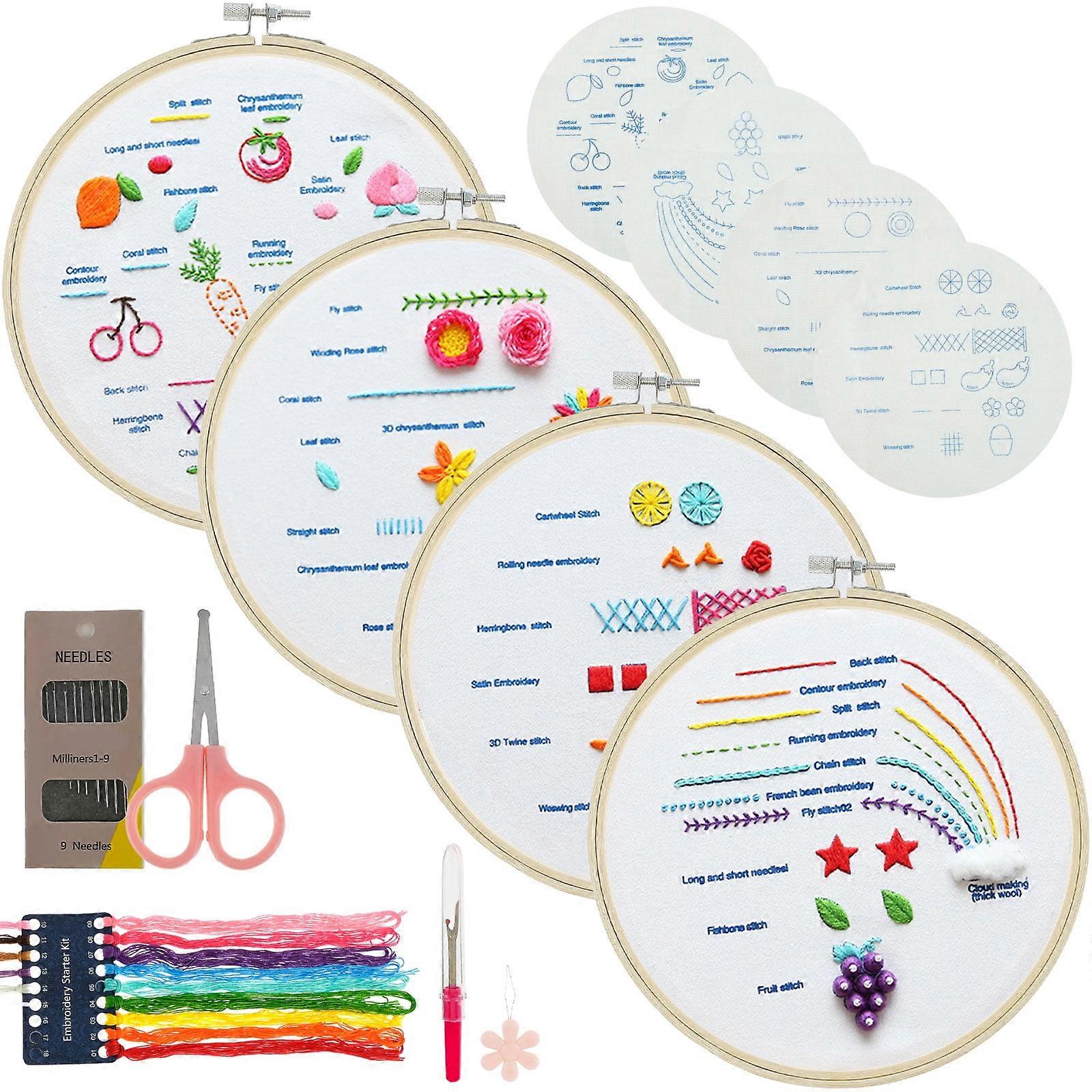Duety 4Pcs Embroidery Starter Kit for Beginners, Colorful Patterns, Hoop, Scissors, Threads, Needles, Compatible with Craft Gifts