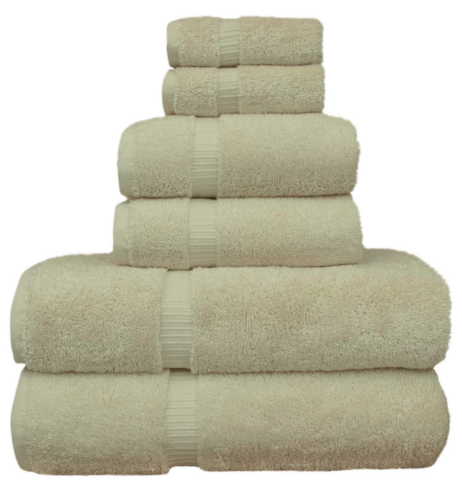 Luxury Hotel & Spa Quality 700 GSM Quick Dry 100% Turkish Cotton Eco Friendly Dobby Border Towels (6-Piece Set: 2 Bath, 2 Hand, 2 Washcloth, Beige)
