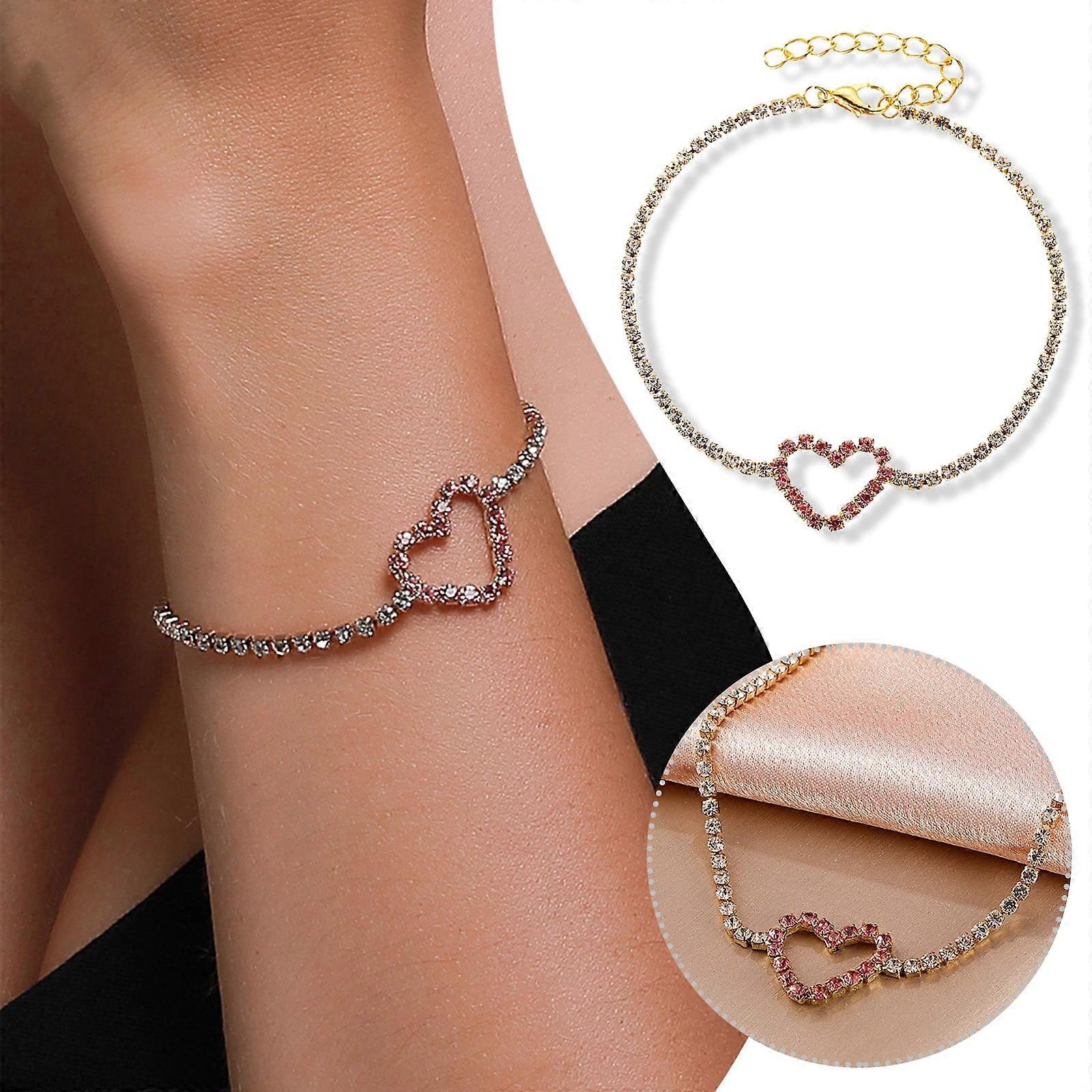 Kayannuo Christmas Clearance Ladies Fashion Sweet Pink Heart Bracelet Creative Shiny Rhinestone Peach Minimalistic Versatile Tennis Chain