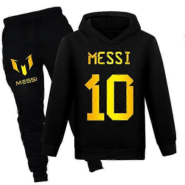 Kids Boys Girls Messi Football Soccer Jerseys Training Set Hoodie Tops+Pants Black 160 cm