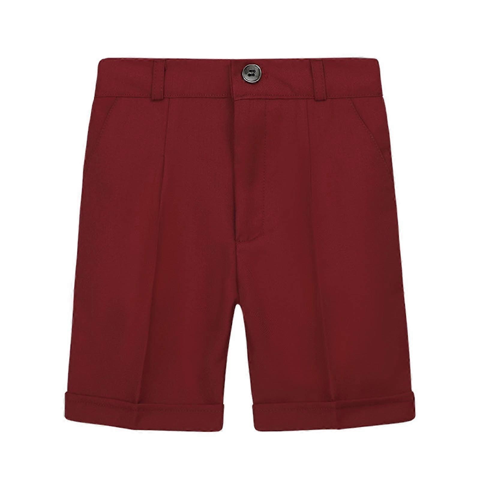 FAMTKT Big Boy's Flat Front Shorts Summer Cotton Classic Cute Solid Color Casual School Uniform Suit Shorts, Boys Pants( 2-3 Years, Wine )