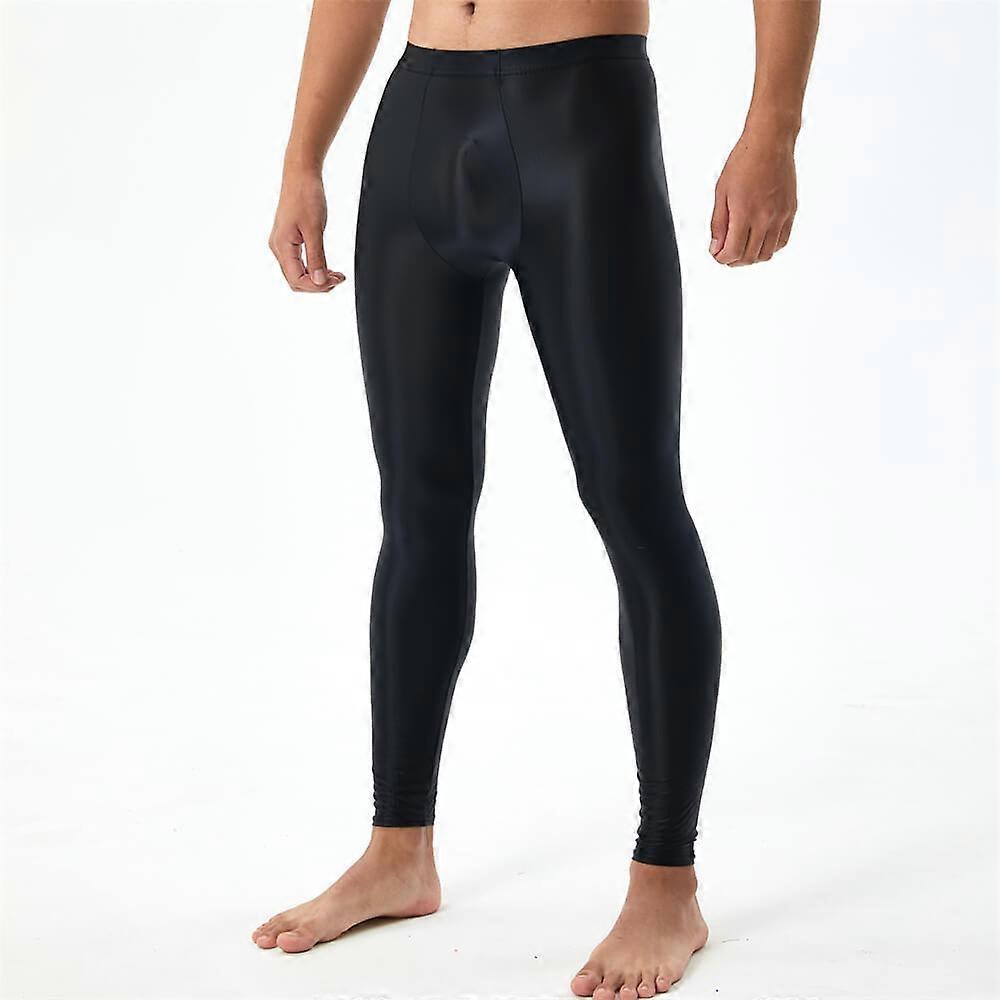 Men Sexy Semi-sheer Shiny Long Johns Pants Sports Leggins Fitness Tight Leggings