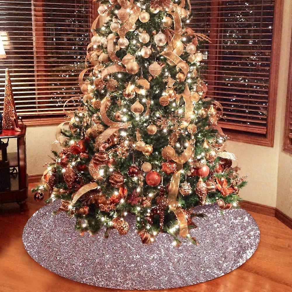 Rose Gold Christmas Tree Skirt, 48 Inch Sequin Double Layers Tree Mat for Party Decorations