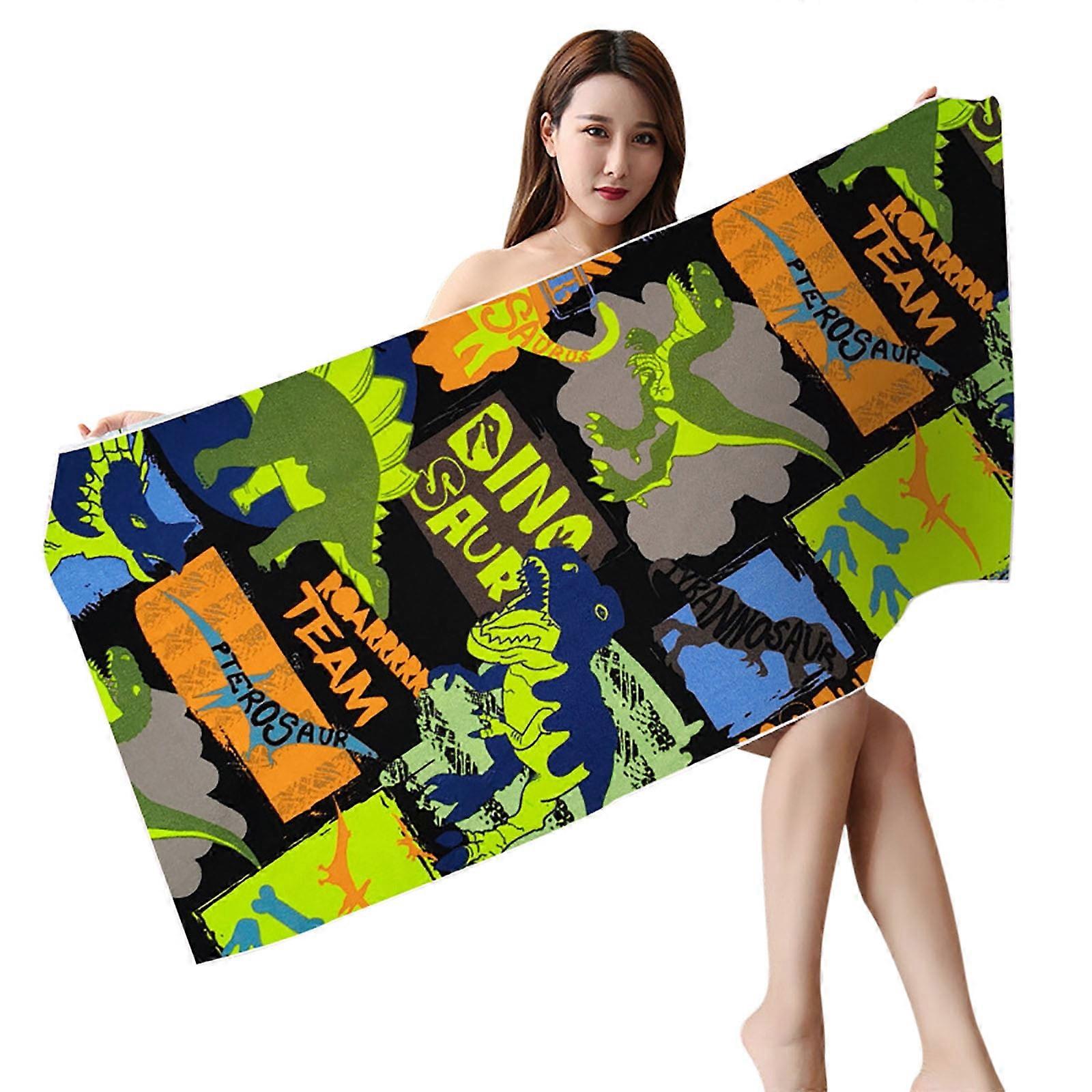 FastXmas Microfiber Beach Towel, Colorful Dinosaur Print, Sand-Free, Soft Lightweight Quick-Dry, 30"x59", compatible with travel camping vacation