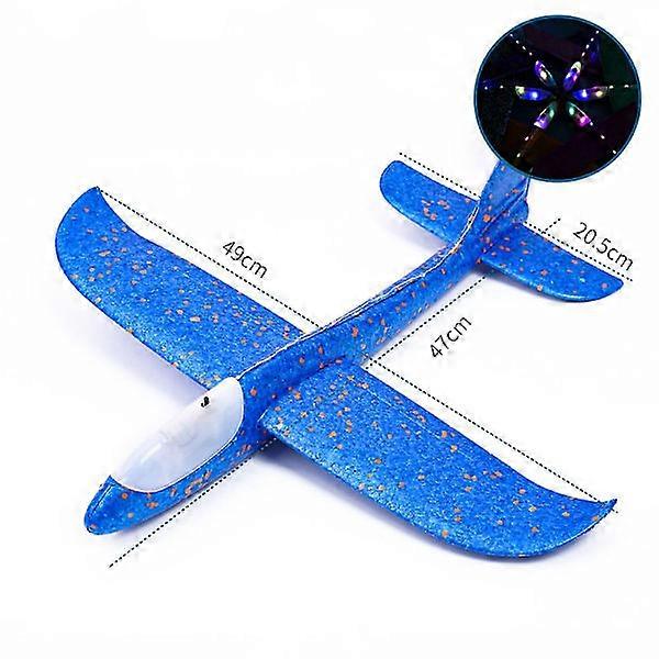 48cm Large Foam Airplane Glider Hand Throw Airplane Inertia Powered Outdoor Launch Kids Toys [DmS] Blue Body Light