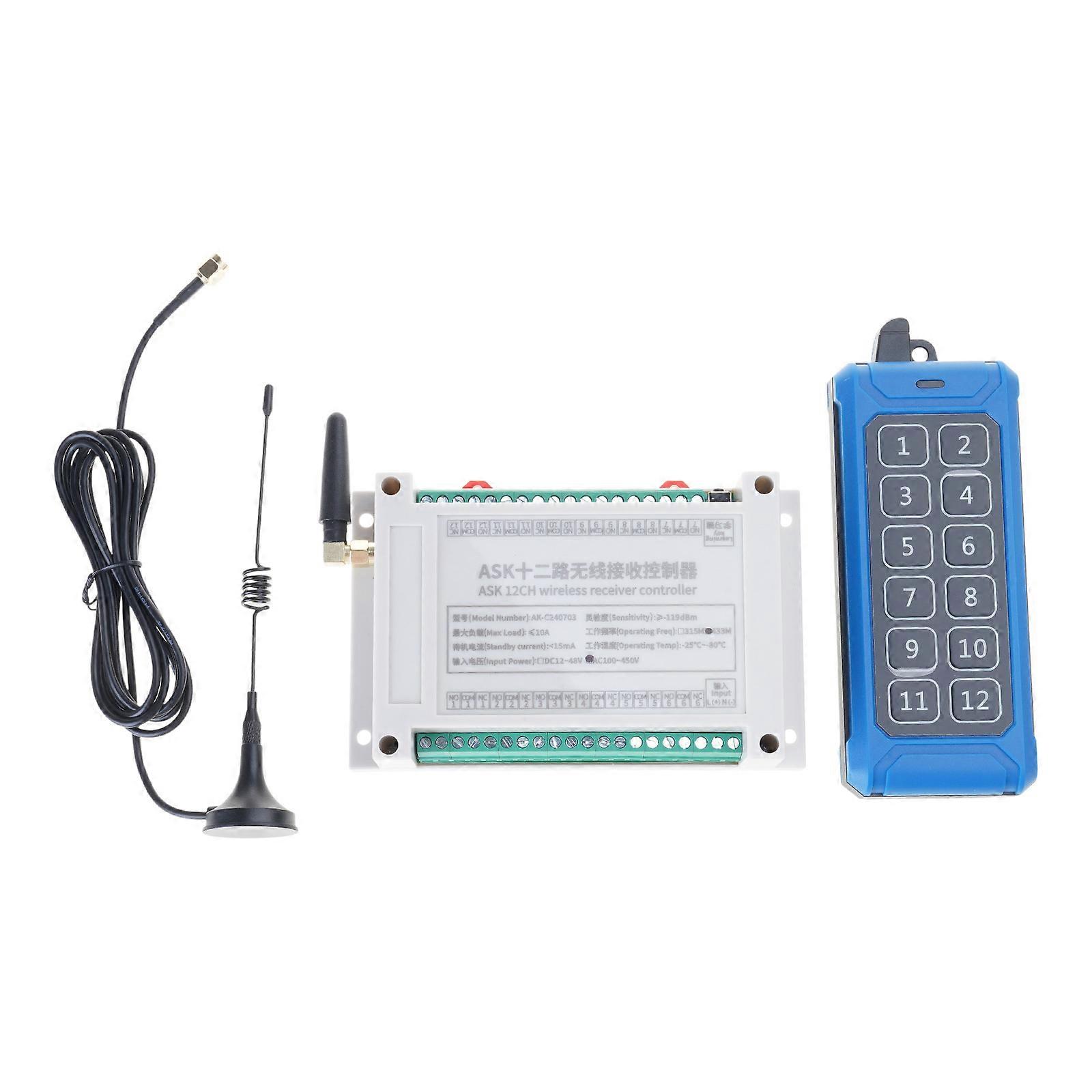 315Mhz/RF433Mhz Wireless Remote Control Switch DC 85V-380V Relay 12CH Receiver Controller and 12Button Transmitter Multicolor