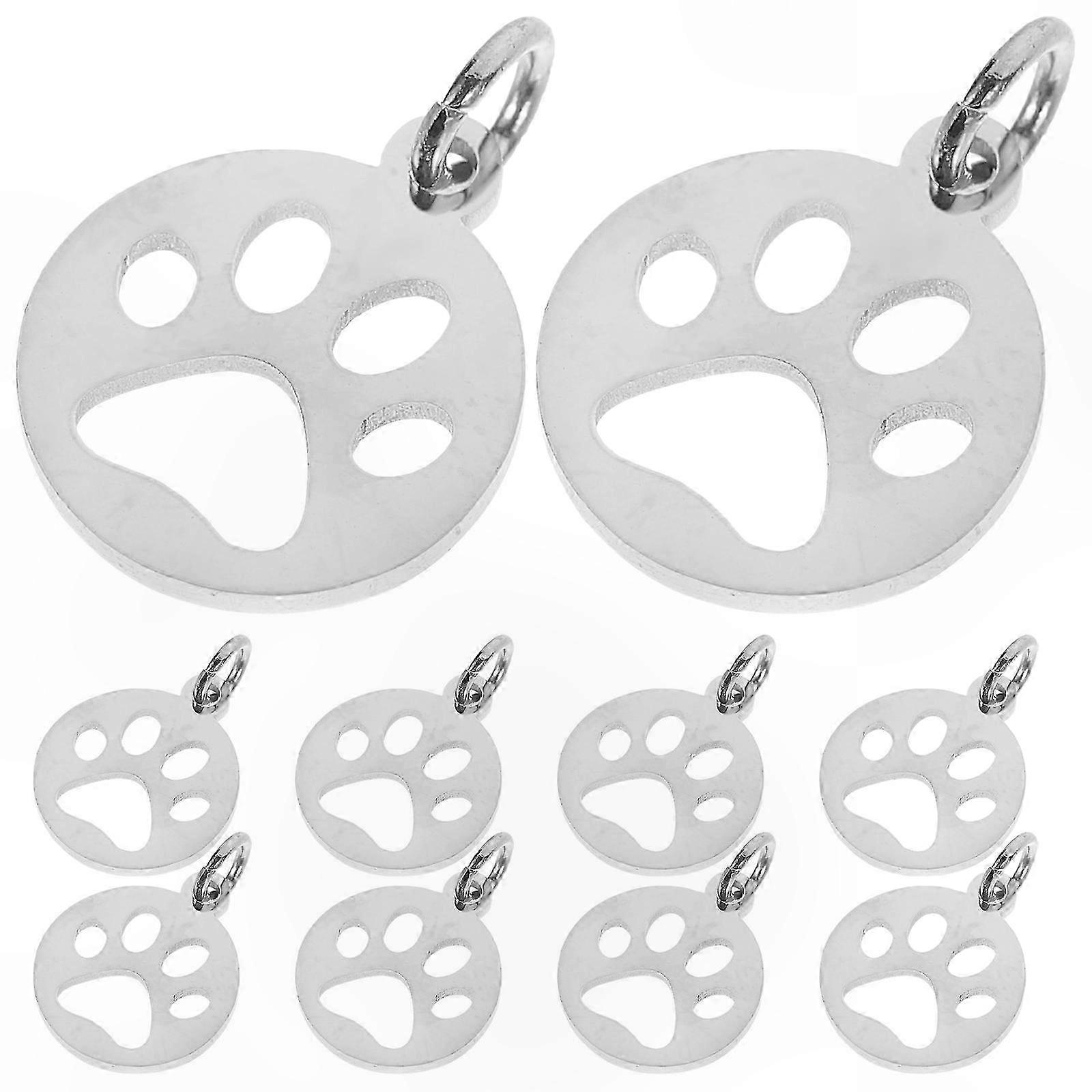 10 Pieces Stainless Steel Dog Paw Pendants for Jewelry Making