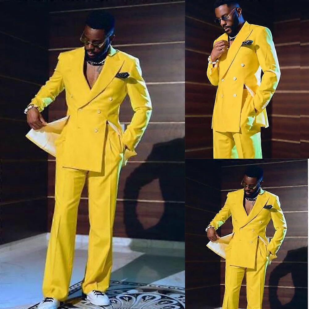Yellow Men Suits Double Breasted Casual Party Wedding Formal Business Blazer