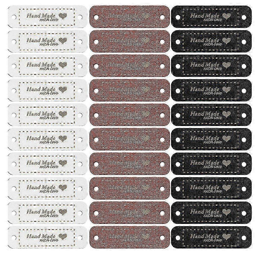 60Pcs Handmade PU Leather Tags Faux Leather Sew on Labels Embellishment Knit Accessories with Holes for DIY Crafts A-F Edition 1212