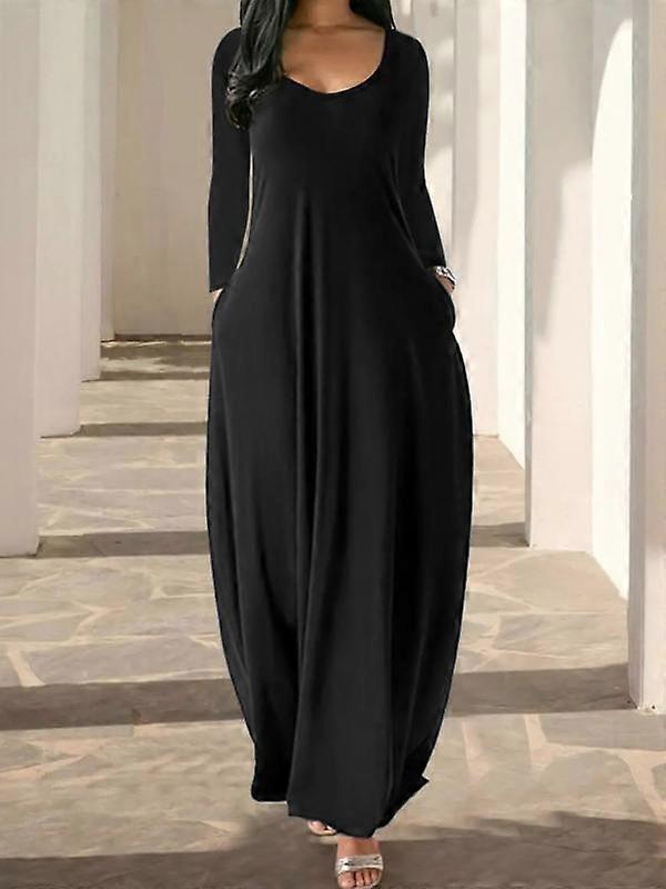 Women's Long Nightgown, Coffee Leopard Print, Casual Round Neck Long Sleeve Pocket Sleepwear, Soft Comfortable All-Season Loungewear