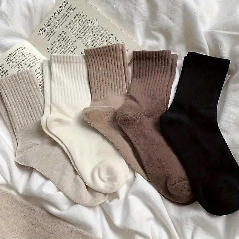 5Pairs Of Mid-Calf Socks: Comfy, Breathable & Stylish For Sports & Outdoor Casual Wear Minimalist