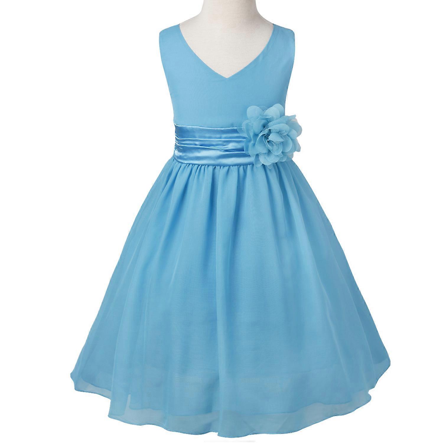 Flower Girl Dress V-neck Princess Dress Chiffon Party Birthday Wedding Prom Gown