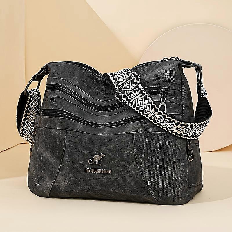 Retro-style women's shoulder bag with adjustable shoulder strap, multiple zippered compartments, synthetic imitation leather