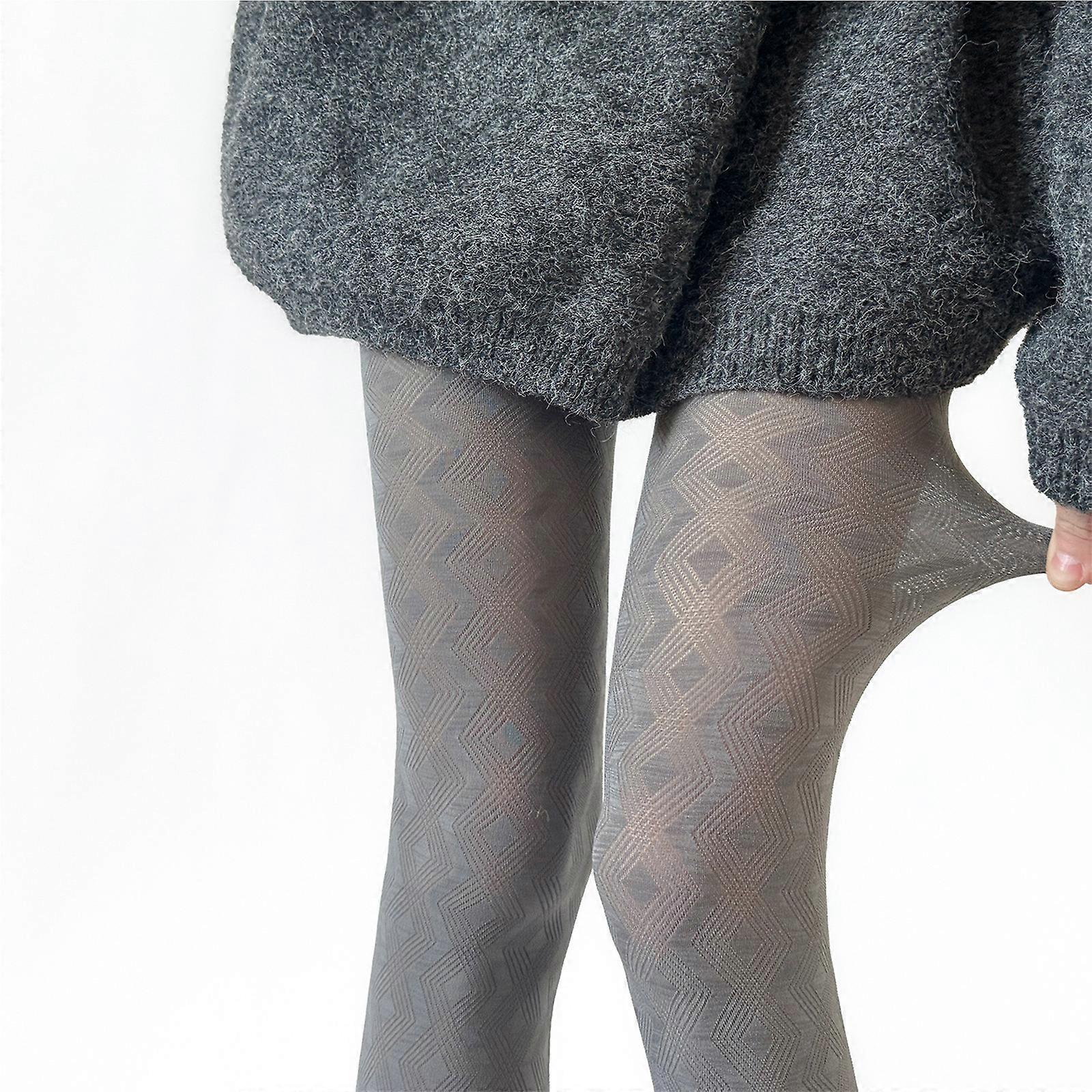 Women's Warm Breathable Nylon Tights Vertical Wavy Argyle Pattern Semi Opaque Pantyhose for Office and Casual Wear soot OS