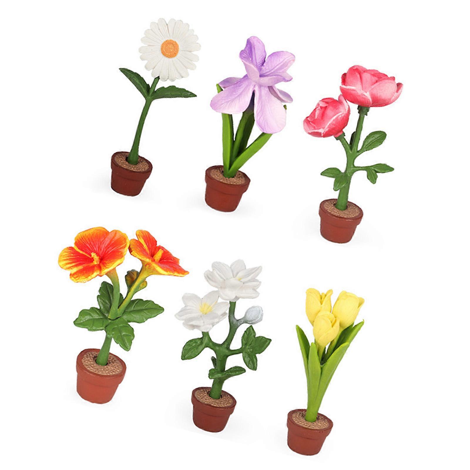 6PCS Realistic Potted Flower Simulation Potted Plant Model For Miniature Garden Scene Setting Home Decors Enhancement Multicolor
