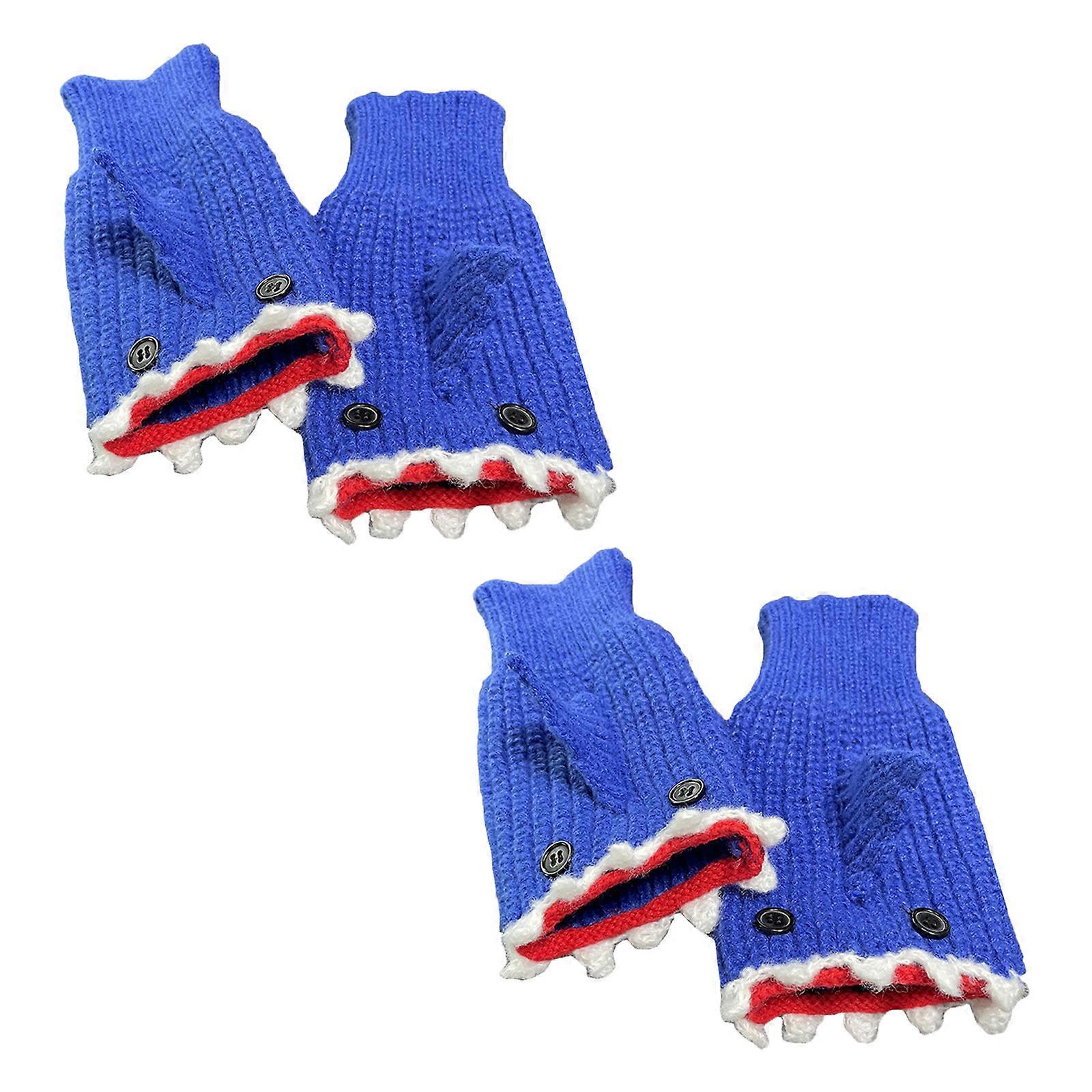 (1 pack)Soft Kids Winter Gloves Warm Mittens Half Finger Cartoon Mittens for Boys Girls Winter Supplies Royal Blue