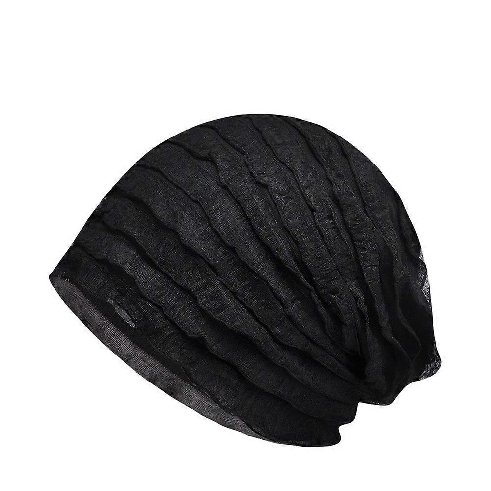 Women Solid Cotton Lace Striped Stretch Beanie Hat Elastic Summer Slouchy Cap