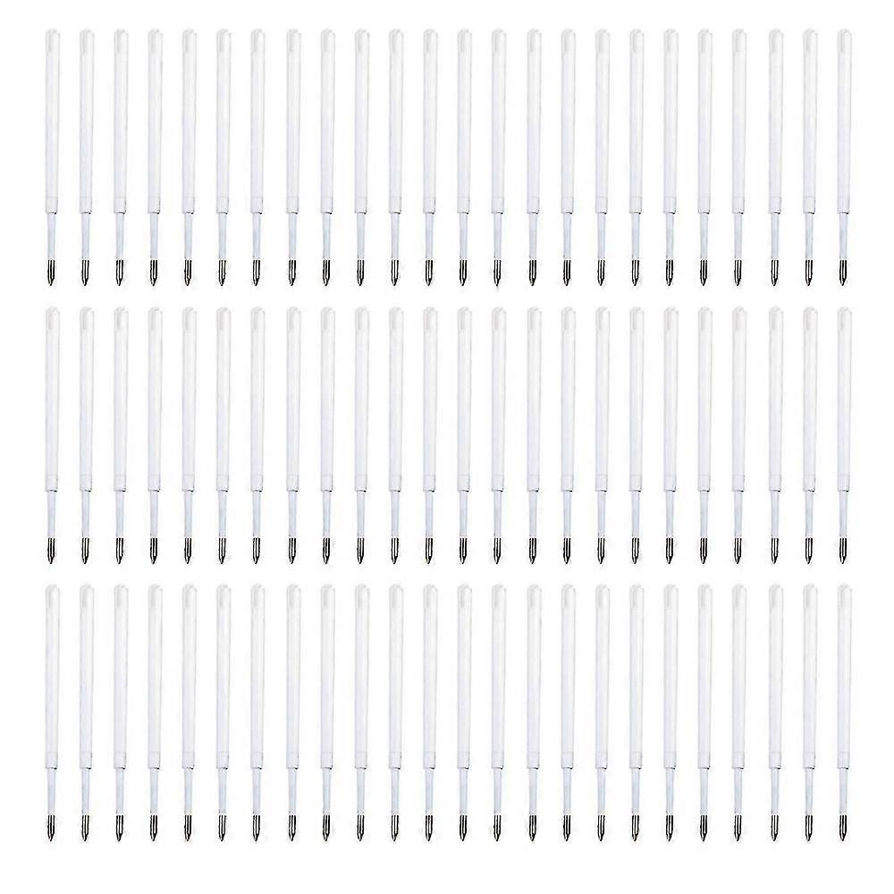 This package contains 100 pieces of replaceable ballpoint pen refills. The standard refill is easy to install and features a 1.0mm tip. It is compatible with most retractable and multifunction ballpoint pens. The refills provide a consistent writing experience. Suitable for school or office use. Specifications: Ink Color: Black; Blue Material: PP Size: Approximately 9.8cm / 3.86in Package Includes: 100 pieces of retractable ballpoint pen refills.