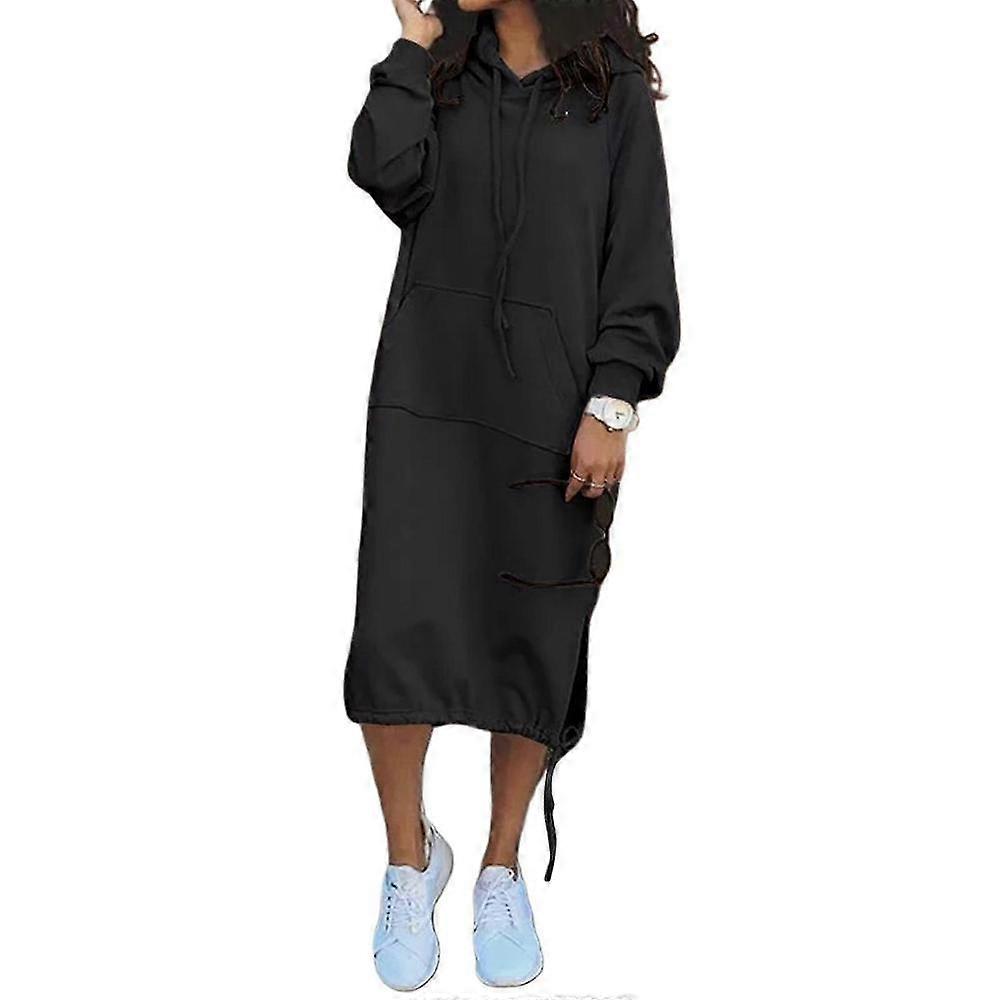 Women's Olive Green Hoodie Dress, Long Sleeve Casual Sweatshirt with Pockets, Size XXL