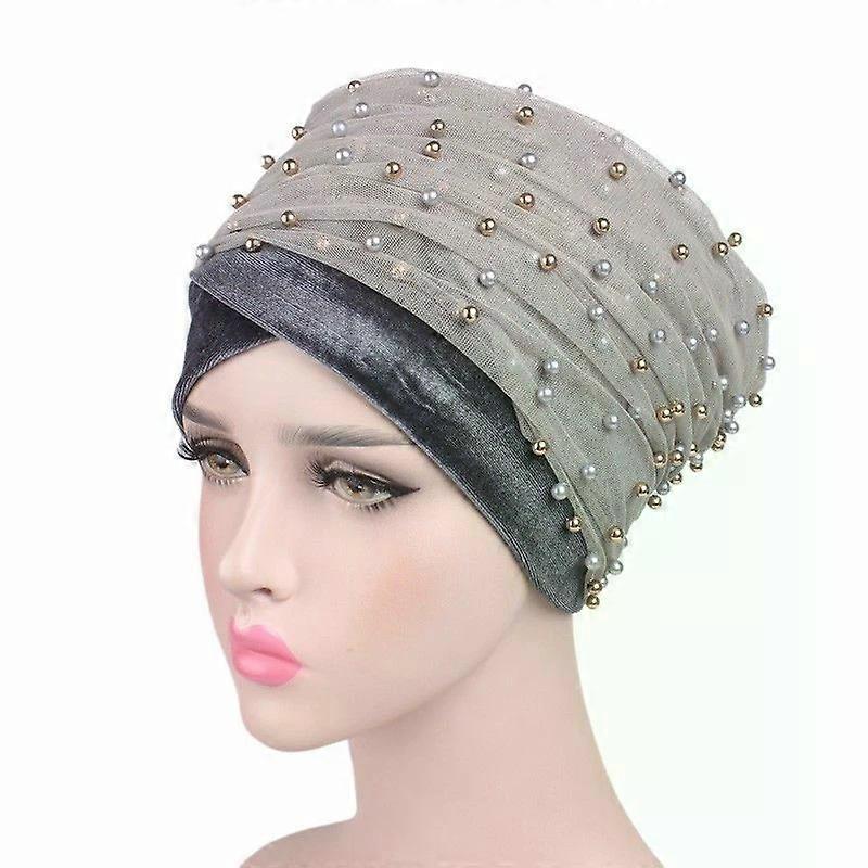 Luxury Women Gold Beaded Mesh Head Wrap Velvet India Turban Hijab Long Headscarf