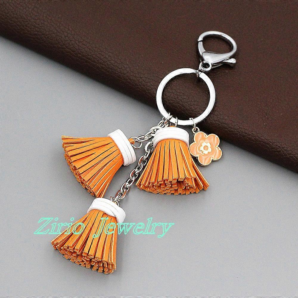 Handmade Leather Tassel Flower Key Chain Bag Purse Keyring Handbag Accessories