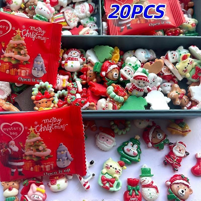 20pcs Cute Christmas Series Blind Bags, Mystery Surprise Gifts, Santa Claus Reindeer Resin Animals, Home Office Decor, Xmas Party Presents