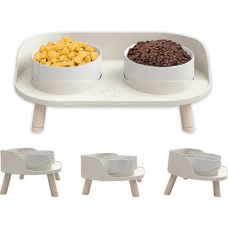 Elevated Ceramic Cat & Dog Bowls with Stand - Adjustable Height (3 Levels), Anti-Vomit Design, Non-Spill Pet Food & Water Dish - 5 Inch (12.