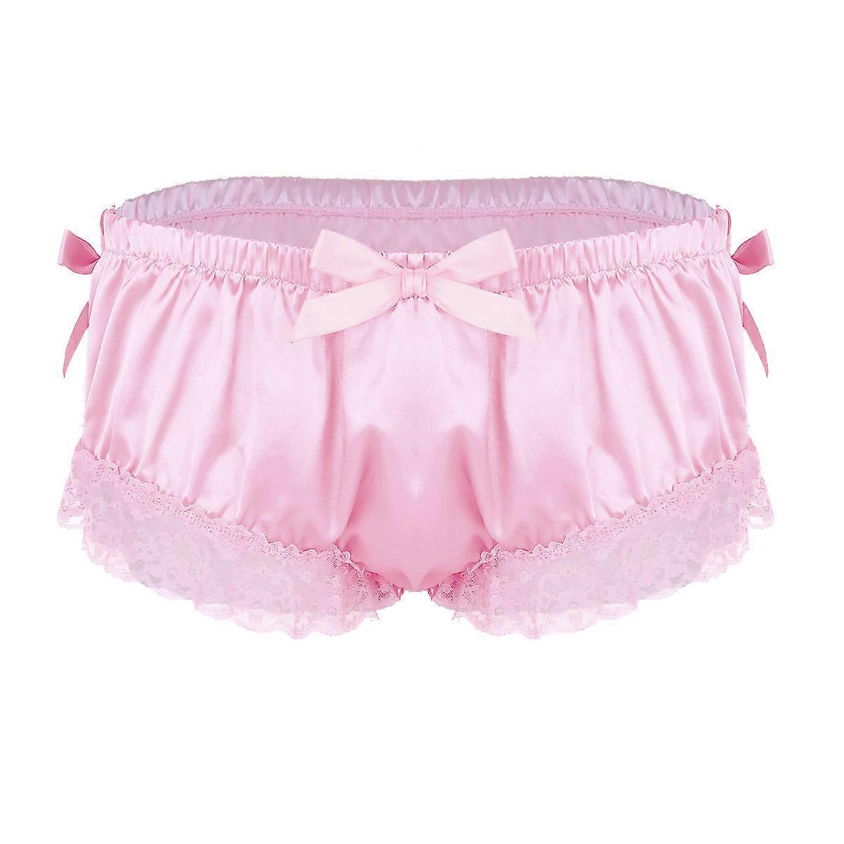 Culottes pour homme, style sissy, en satin à volants et dentelle, style bikini, lingerie brillante.