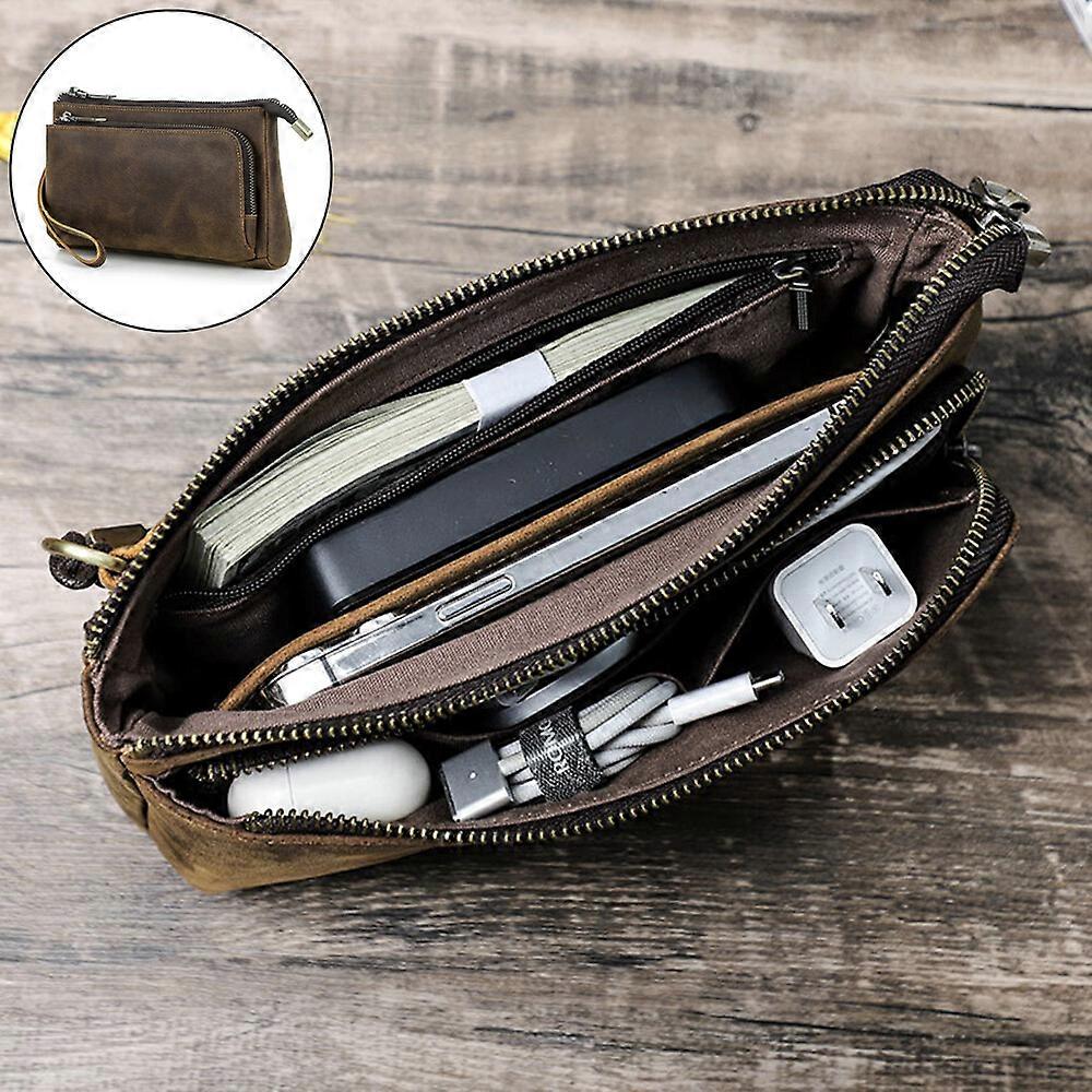 Retro Men's Clutch Bag Genuine Leather Electronic Accessories Organizer HandBag