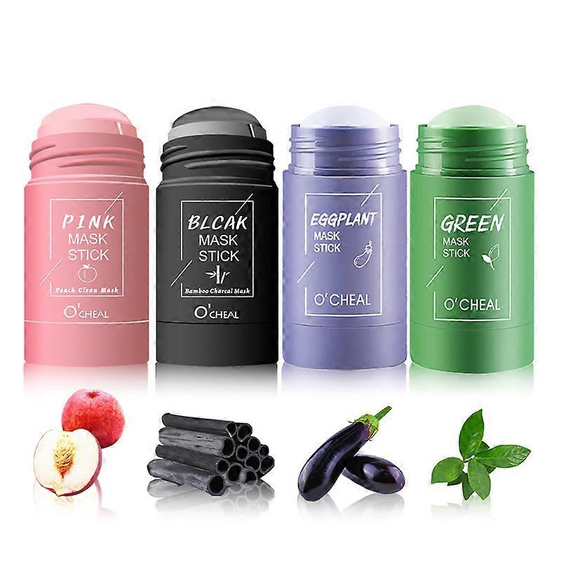 1/4 Pack Mask Sticks Set, Green Tea Mask Sticks, Bamboo Charcoal Clay Mask, Aubergine and Peach Mud Mask, Facial Skin Clay Mask Set for All Skin Types