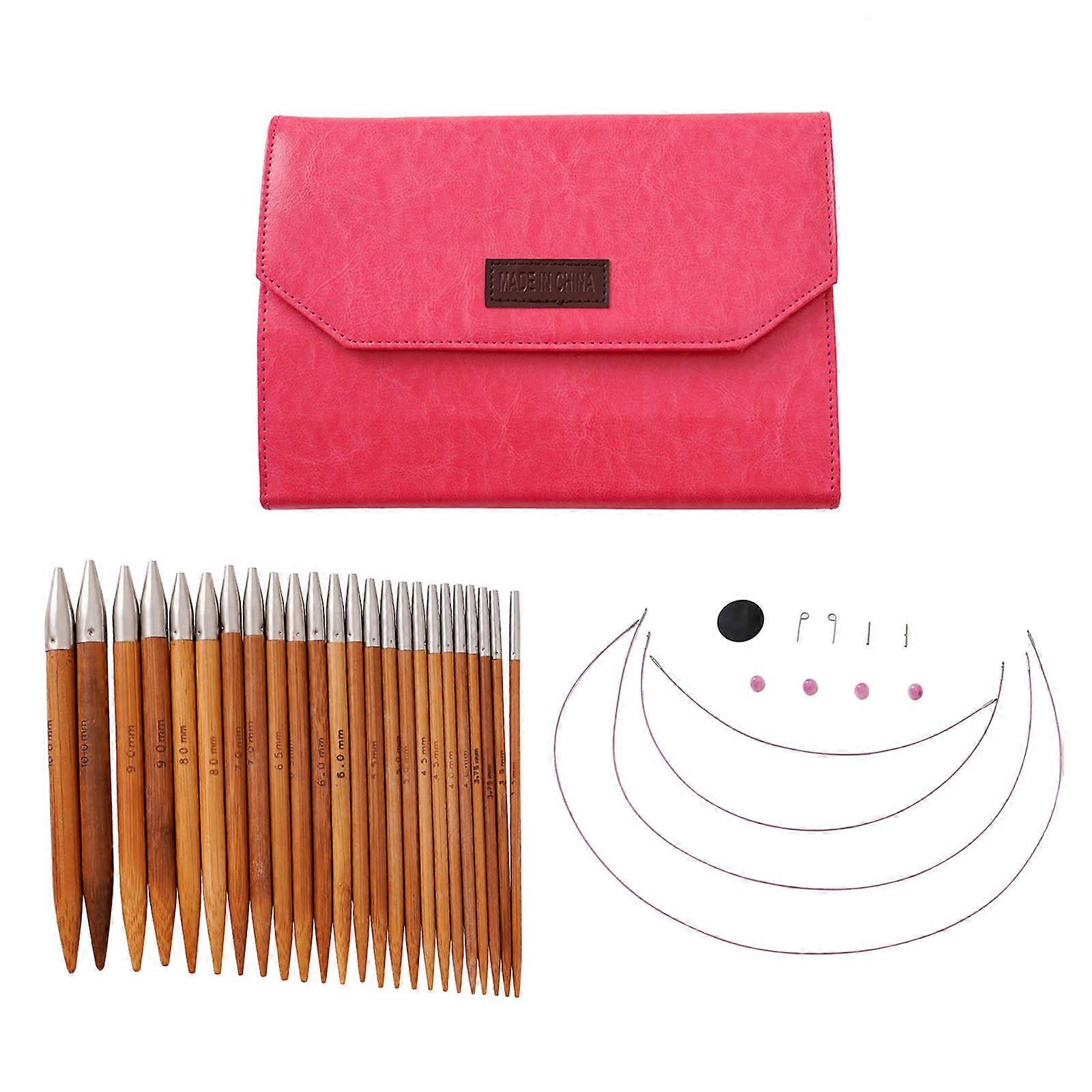 12Pairs Interchangeable Circular Knitting Needle Set with Leather Case 3.5mm-10mm Wood Circular Knitting Needle Multicolor