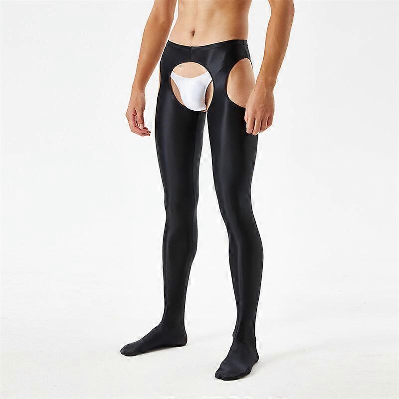 Women Men Satin Shiny Open Crotch Long Sheer Pants See Through Elastic Leggings