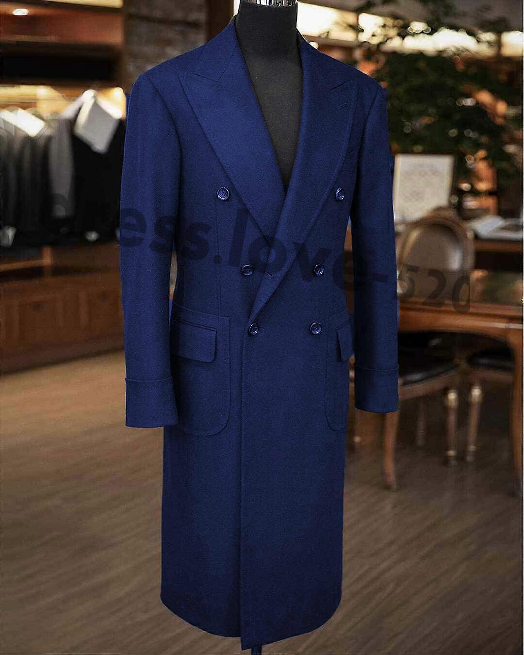 Men Wool Overcoat Double-breasted Peak Lapel Heavy Winter Outwear Jacket Suits