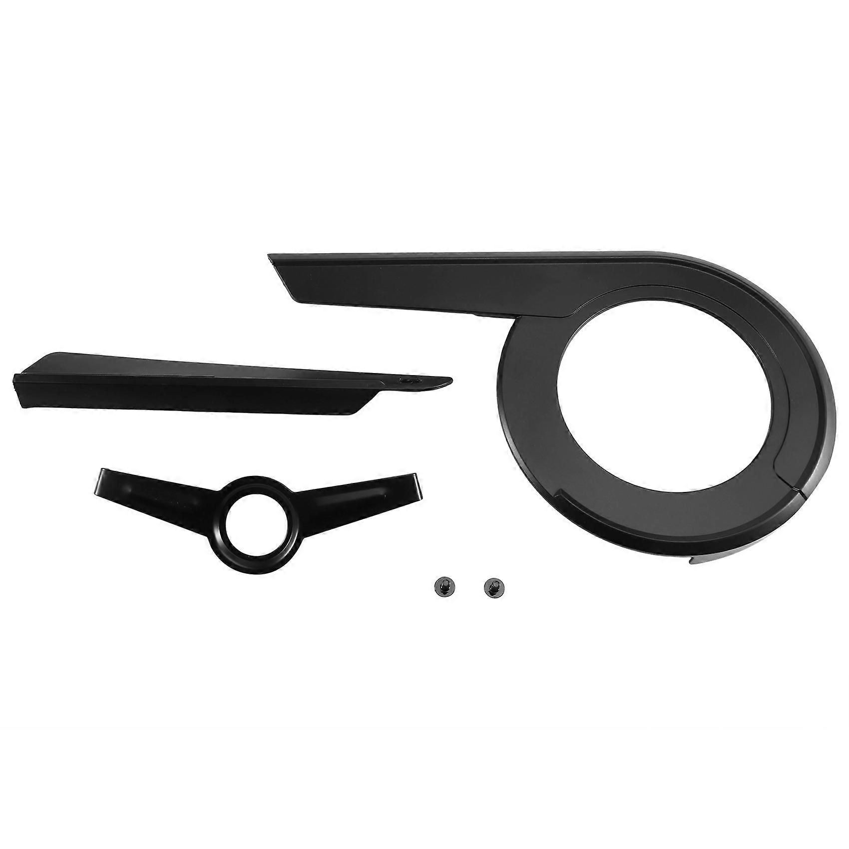 [High Quality Material]: The bike chain cover is made of high quality material, durable, lightweight and long using time. [Bike Chain Protector]: The bike chain guard is designed for protect your bike chain from dust, water, stone, etc. [Installation Instructions]: 1. Take out the center shaft. 2. Put it into the fixed bracket 3. Reinstall the center shaft 4.Please make sure the bracket is properly installed and do not install upside down. 5. Reinstall the chainring. 6. Reinstall the chain. 7. Install the chain cover. 8. Fix the chain cover with screws. 9. Fix the tail of chain cover. (please pre place the hole.) style: Standard Color: Black Material: ABS Package Contents: 1 x Bicycle Chain Cover kit