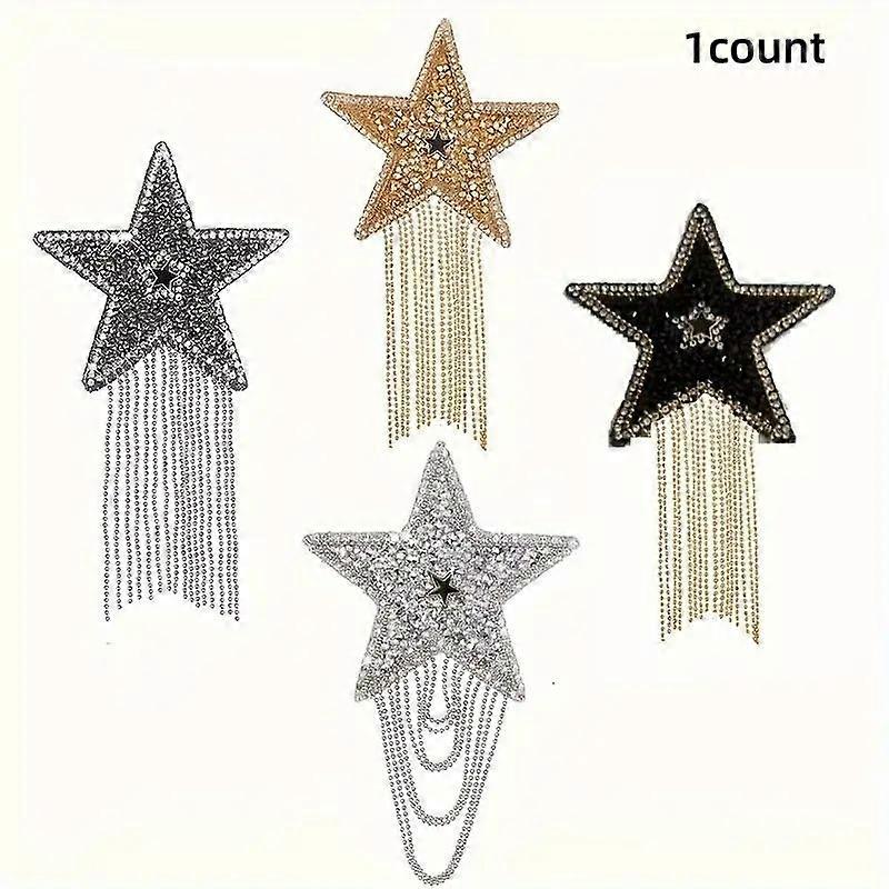Shiny Star Rhinestone Patch with Chain Fringe, DIY Fashion Decoration, Clothes Bag Accessories Repair Patches, 1 Piece