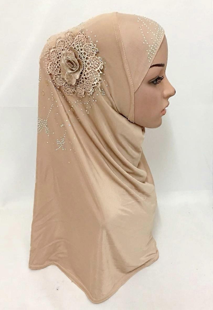 New Muslim Women Flower Hijab Hat Rhinestone Headscarf Arab Amira Headwear Wrap