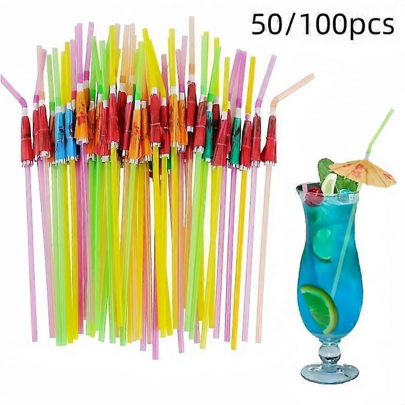 50/100pcs Mini Umbrella Straws, Hawaiian Beach Cocktail Party Decorations, Summer Party Supplies for Birthday, Gatherings & Bars