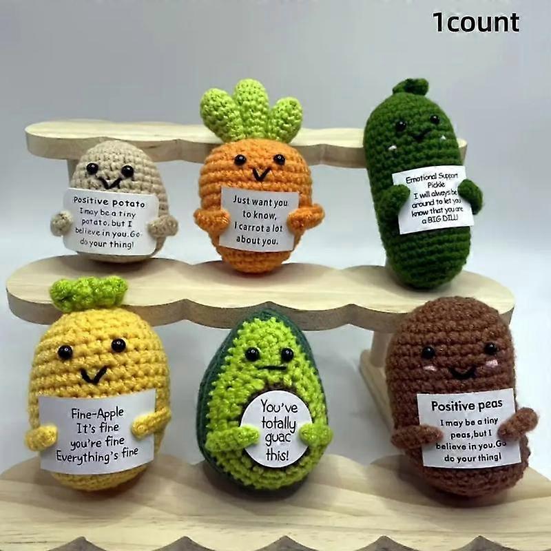 Cute Crochet Emotional Support Set with Inspirational Cards, Fun Fruit & Veg Design, DIY Craft Keychain, Home Decor Gift Idea