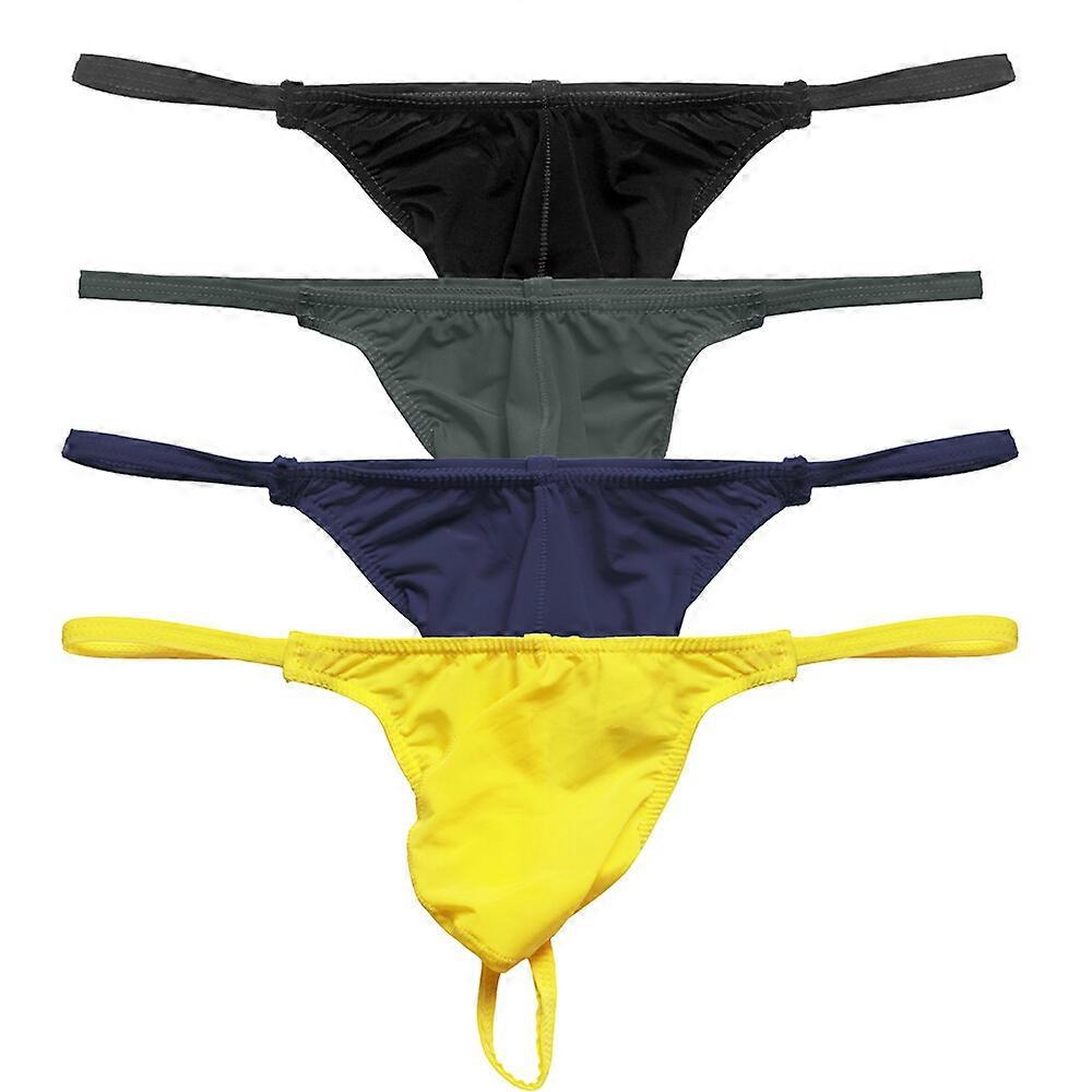 4 PACK Men's Thongs Thin Ice Silk Bikini Underwear G-strings Jockstrap Panties