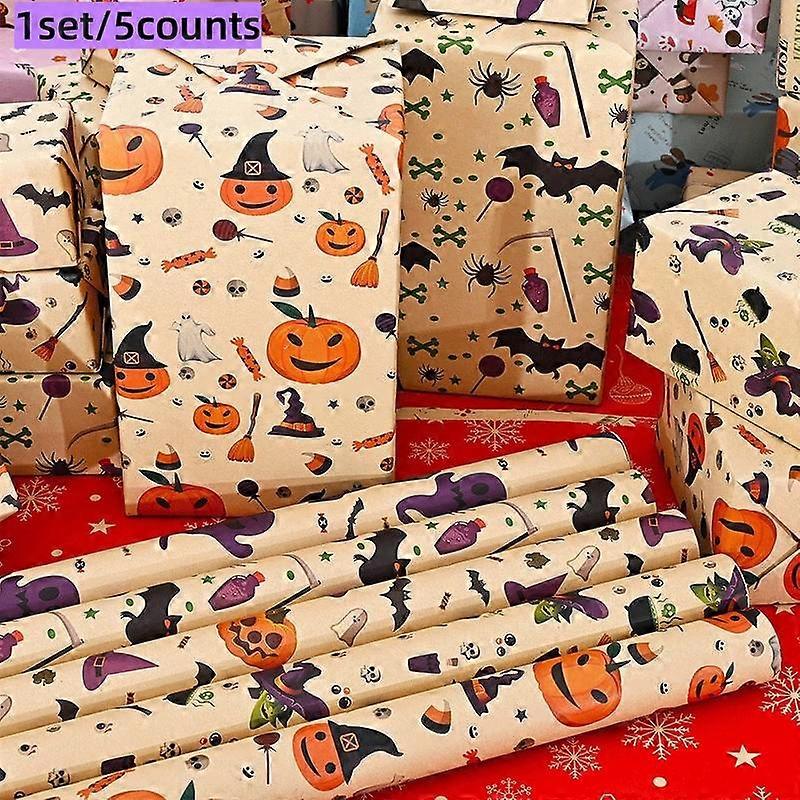 Halloween Gift Wrapping Paper Set, Pumpkin Bat Witch Ghost Designs, Perfect for Gifts Bouquets Boxes Parties Decorations