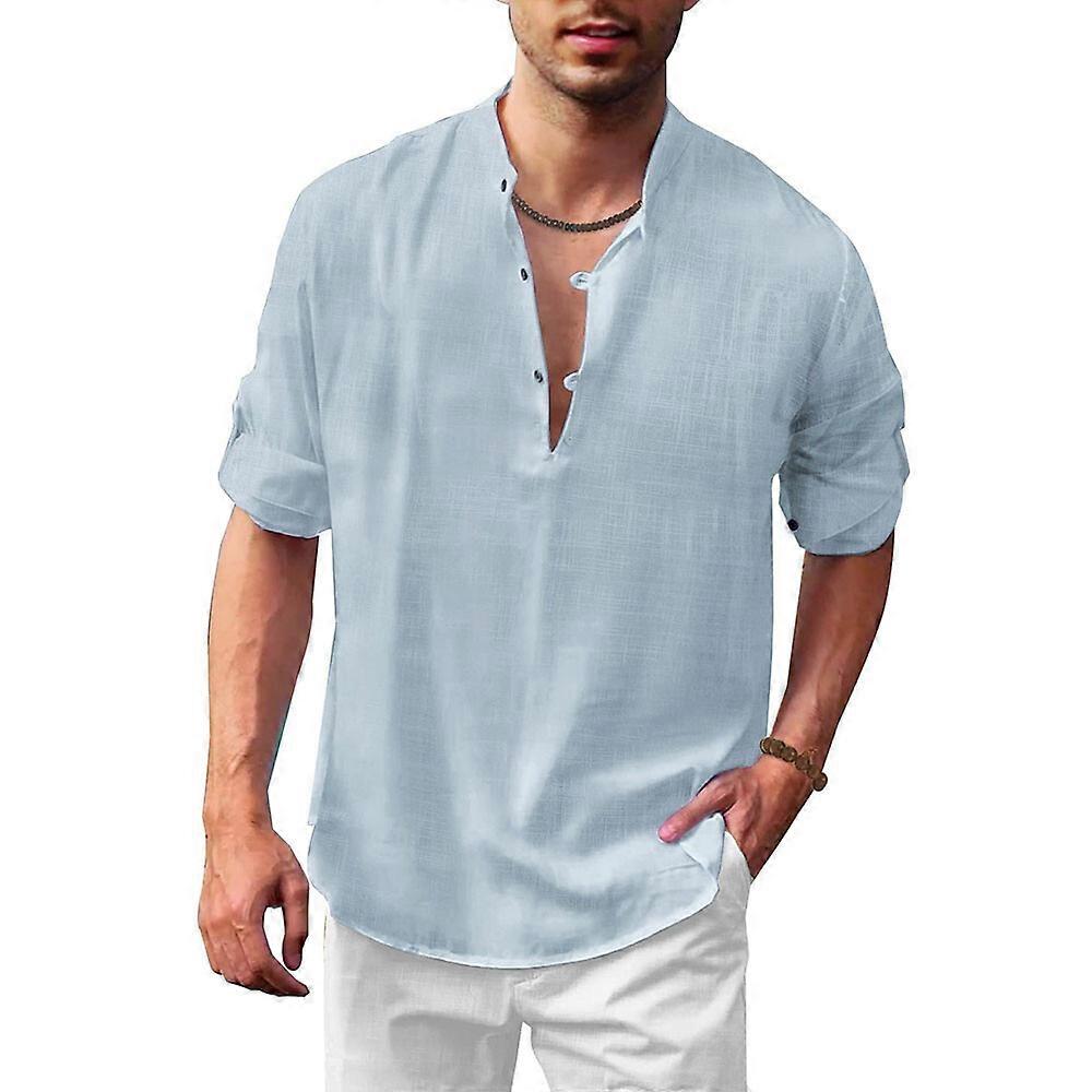 Men's Casual Cotton Linen Henley Shirts Long Sleeve Hippie Beach T-Shirt UK #