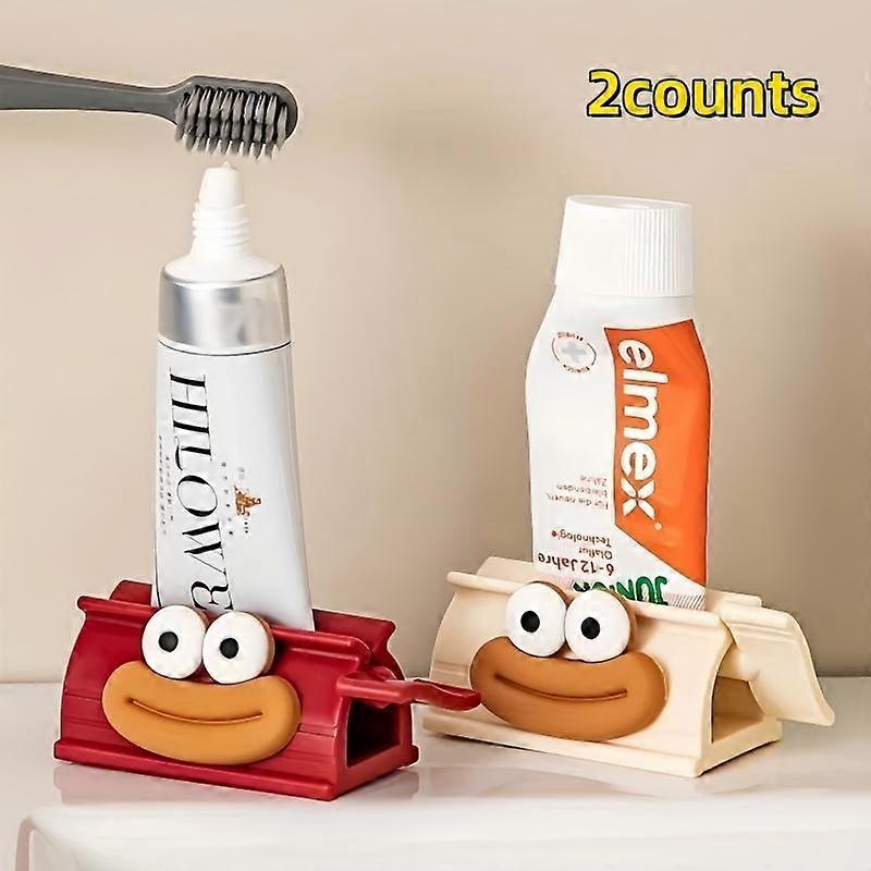 2-Pack Easy Squeeze Toothpaste Dispenser with Cute Big Mouth Design, Manual Bathroom Accessory for Easy Toothpaste Use