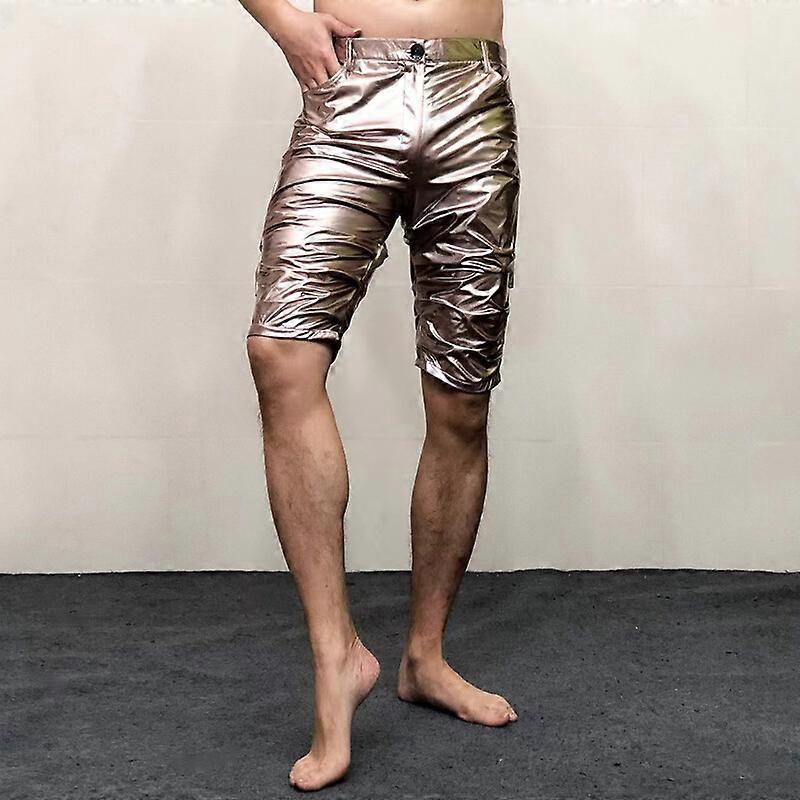 Men Shorts Shiny Faux Leather Wet Look Crinkle Half Pants Nightclub Dance Party