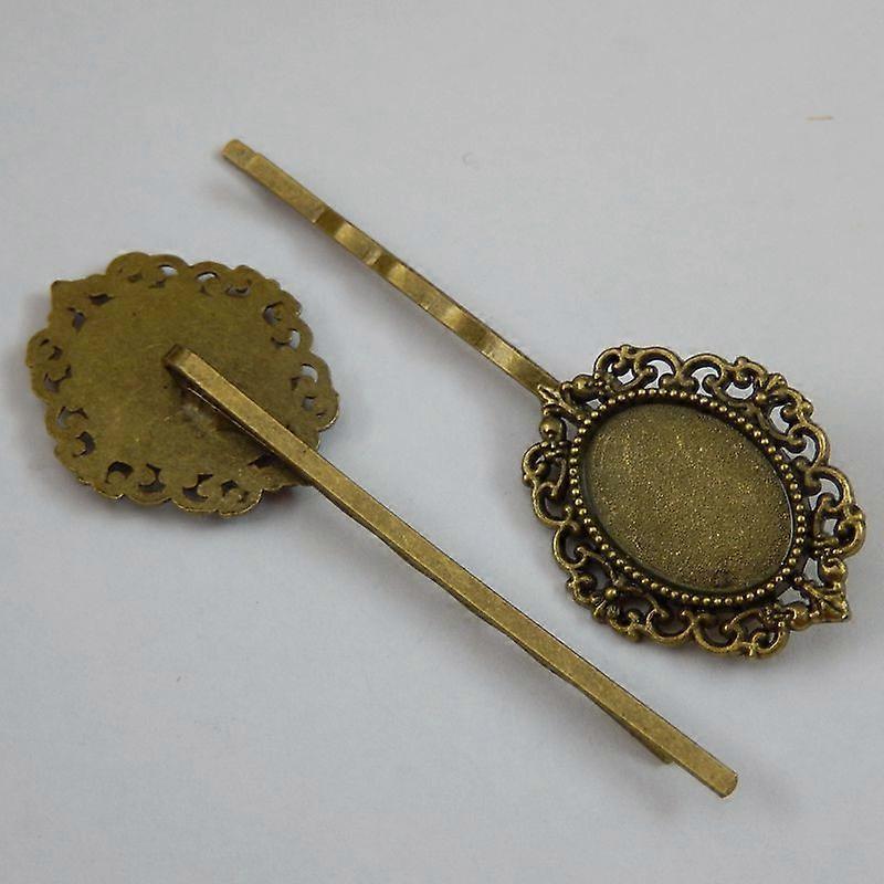 10pcs Vintage Bronze Alloy Ritual Oval Cameo Setting Tray Hair Pin 18*13mm 50271