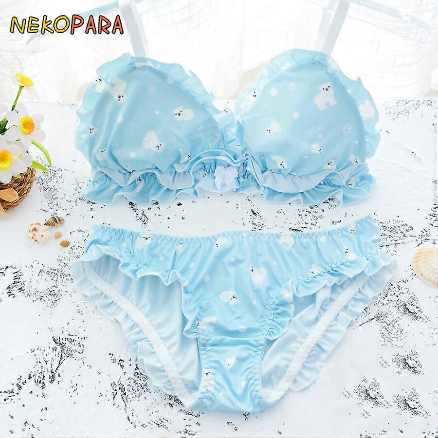 Polar Bear Blue Bra & Panties Set Wirefree Soft Underwear Sleep Intimates Set