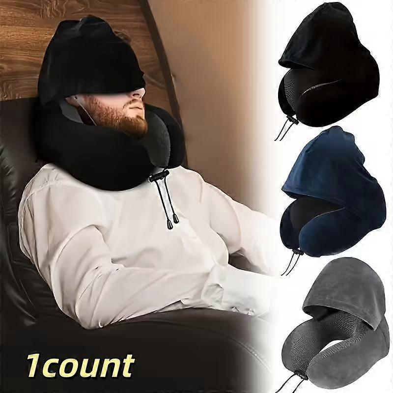 Adjustable Hooded U-Shaped Neck Pillow, Washable Collar Support for Office Naps, Car Travel, Outdoor Use, Comfortable Fit, Durable Fabric, I